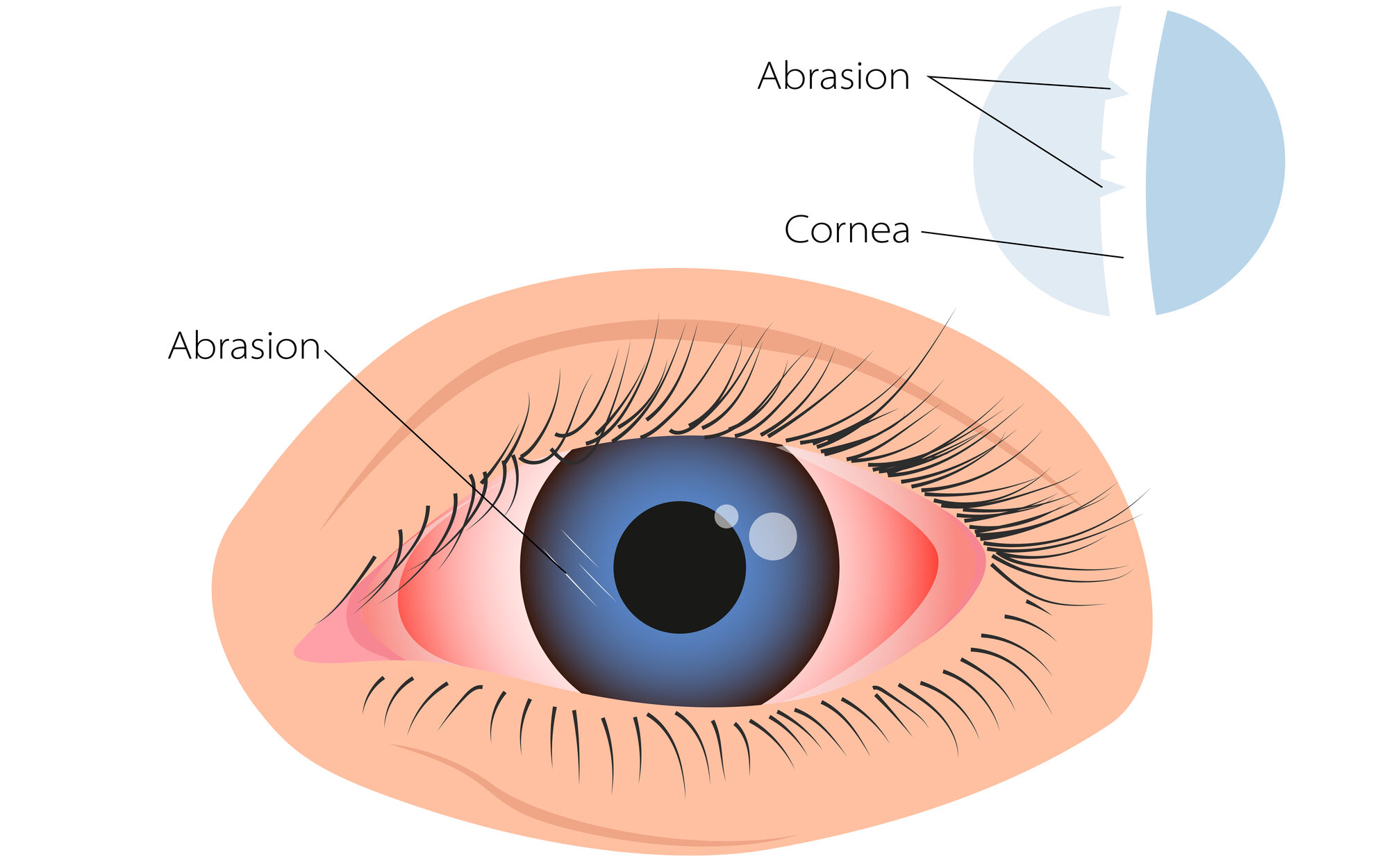 A corneal abrasion is a scratch or cut on the surface of the eye. If a corneal abrasion gets infected by bacteria, it can lead to a corneal ulcer.