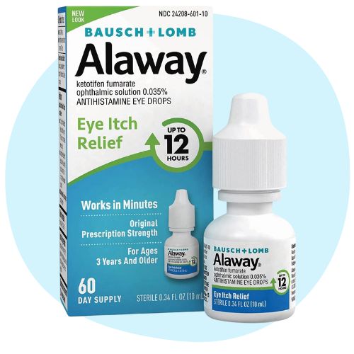 Alaway Antihistamine eye drops from Bausch + Lomb is our pick for best allergy eye drops because it contains ketotifen, which effectively eliminates symptoms of allergic pink eye.5