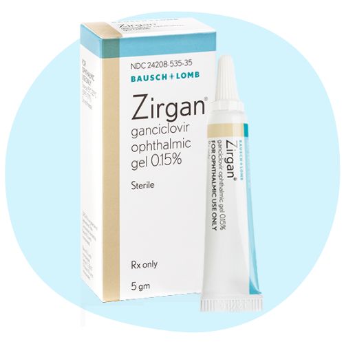Bauch + Lomb ZIRGAN ganciclovir ophthalmic gel is a topical antiviral commonly prescribed for pink eye caused by the herpes simplex virus.