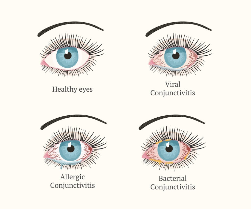Several factors can lead to conjunctivitis symptoms. Besides viral infection, the most common causes are bacterial infection and allergies. (dust, pollen, grass, animal dander, etc.)